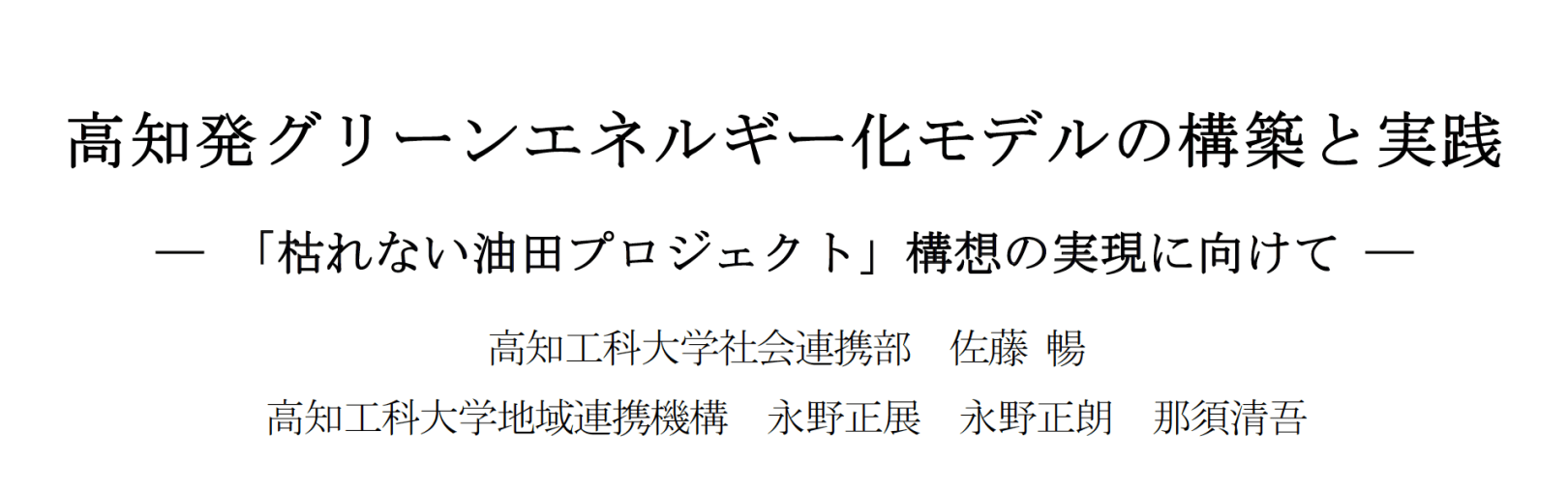 高知発グリーンエネルギー化モデルの構築と実践 2013年12月31日2016年7月25日 投稿者: bizmodelorg 高知発グリーンエネルギー化モデルの構築と実践 高知工科大学社会連携部 佐藤 暢 高知工科大学地域連携機構 永野正展 永野正朗 那須清吾 Vol11-1 共有: X で共有 (新しいウィンドウで開きます) X Facebook で共有 (新しいウィンドウで開きます) Facebook いいね 読み込み中… bizmodelorg コメントを残す コメントをキャンセル Δ